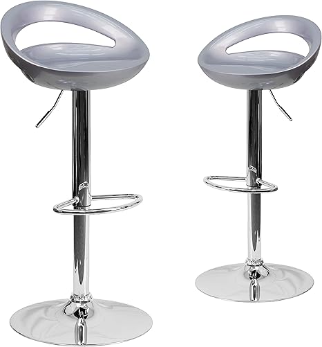 Amazon Com Flash Furniture 2 Pack Contemporary Silver Plastic Adjustable Height Barstool With Rounded Cutout Back And Chrome Base Furniture Decor